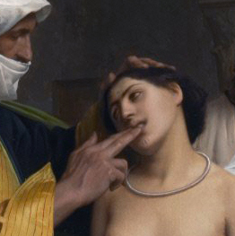 La perla del mercader (The Merchant’s Pearl) (1884) by Chilean painter Alfredo Valenzuela Puelma. Muslim slave markets were the subject of numerous paintings by classical artists.